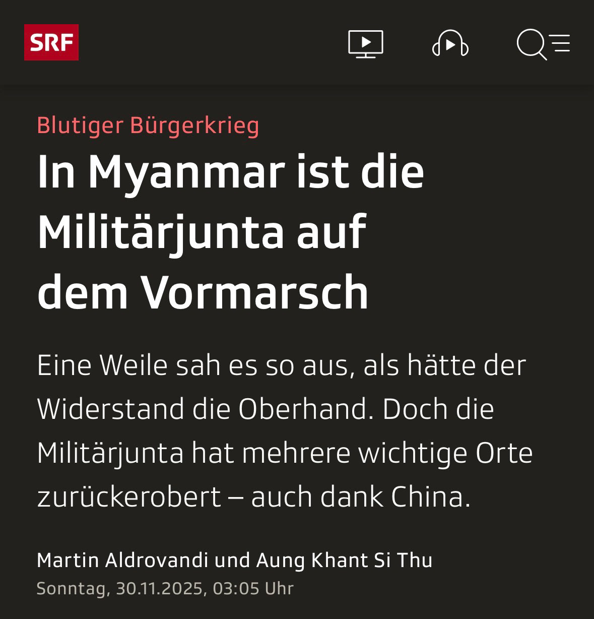 In Myanmar ist die Militärjunta auf dem Vormarsch (SRF)